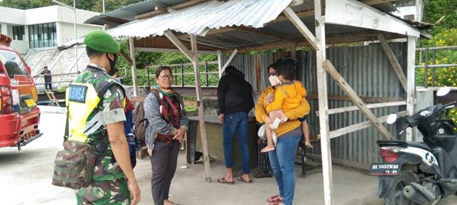 Simalungun | Dalam rangka untuk memutus mata rantai penyebaran virus corona Covid-19 diwilayah binaan, dalam hal ini Personel Bintara Pembina Desa (Babinsa) Koramil 15/Sipintu Angin jajaran Kodim 0207/Simalungun Serda Darwinsyah turun kewilayah binaan untuk melaksanakan kegiatan penegakan disiplin Protokol Kesehatan /memberikan himbauan kepada Masyarakat agar selalu mematuhi protokol kesehatan bila berpergian keluar rumah selalu menggunakan masker, menjaga jarak dan sesering mungkin mencuci tangan guna mencegah penyebaran penularan virus Corona Covid 19, kegiatan tersebut yang dilaksanakan bertempat di Pelabuhan Tigaras Kecamatan Dolok Pardamean Kabupaten SImalungun, Minggu (06/03/2022).
