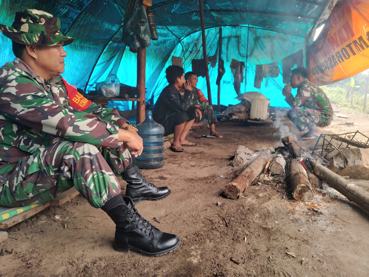 Usai melaksanakan pembersihan di pos , Satgas Pembibitan melanjutkan kegiatan  patroli  saat di pertengahan jalan tiba tiba turun hujan, tim satgas berteduh di  base camp bapak M Siahaan yang merupakan salah satu warga masyarakat desa sihaporas. Sambil menunggu hujan reda satgas pembibitan melaksanakan komsos dengan bapak M Siahaan sampai hujan reda selanjutnya  Tim satgas kembali melanjutkan patroli ke sekitaran base camp.