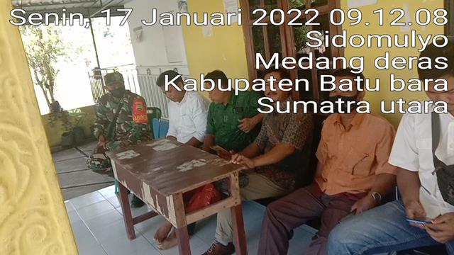 Batu Bara | Dalam rangka untuk menciptakan dan meningkatkan kerja sama yang baik, dan menjaga silatuhrahmi antara TNI dengan masyarakat dan untuk menciptakan kemanunggalan TNI dengan Rakyat serta agar masyarakat dan TNI dapat berbaur,serta terjalin nya kerja sama yang baik antara TNI-Rakyat serta warga yang belum mematuhi protokol kesehatan untuk memakai masker,menjaga jarak dan mencuci tangan, agar terhindar dari penyebaran virus Corona (Covid-19), serta terjalinnya kerjasama yang baik antara TNI-Masyarakat. Seperti halnya yang dilakukan oleh Personel Bintara Pembina Desa (Babinsa) Koramil 01/Medang Deras jajaran Kodim 0208/Asahan Serda Bambang Harapan turun kewilayah desa binaan untuk melaksanakan kegiatan Komunikasi Sosial (Komsos) bersama dengan Masyarakat desa binaan selaku Mitra Karib dalam rangka guna menjalin hubungan silaturrahmi yang baik dengan warga sekitar yang dilakukan bersama dengan Bapak Parmin, Bapak Wariman, Bapak P. Siagian dan Bapak Kardi dengan memberikan himbauan kepada warga binaan agar selalu mematuhi protokol Kesehatan, kegiatan tersebut yang dilaksanakan bertempat di Desa Sidomulyo Kecamatan Medang Deras Kabupaten Batu Bara, Senin (17/01/2022).