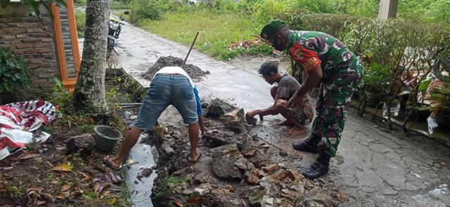 Asahan | Dalam rangka melestarikan budaya warisan leluhur yaitu hidup bergotong royong, dalam hal ini Personel Bintar Pembina Desa (Babinsa) Koramil 11/Simapng Empat jajaran Kodim 0208/Asahan Sertu Azwar turun kewilayah desa binaan untuk melaksanakan kegiatan Gotong-royong dalam rangka Jum’at bersih bersama warga masyarakat desa binaan dengan sasaran pembersihan kiri kanan jalan serta pembersihan Drainase untuk memperlancar saluran air agar tidak terjadi genangan air dan banjir di pemukiman warga terutama dimusim penghujan, bersama dengan Kadus 1 dan Masyarakat Dusun 1, kegiatan tersebut yang dilaksanakan bertempat di Jalan Kertas Dusun 1 Desa Perkebunan Teluk Dalam Kecamatan Teluk Dalam Kabupaten Asahan, Jumat (11/02/2022).