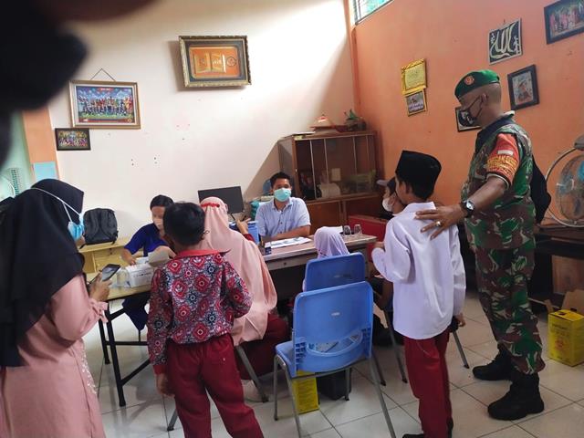 Diwilayah Koramil 02/Siantar Timur Jajaran Kodim 0207/Simalungun Dampingi Pelaksanaan Vaksinasi Usia 6-11 Tahun