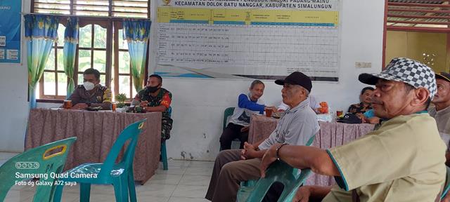 Simalungun  |  Dalam rangka untukmendukung pembangunan dan kemajuan di Desa wilayah binaan, seperti halnya yang dilakukan oleh Personel Bintara Pembina Desa (Babinsa) Koramil 05/Serbelawan jajaran Kodim 0207/Simalungun Koptu Juliadi turun langsung kewilayah binaan untuk melaksanakan kegiatan menghadiri rapat Musrenbang Musyawarah rencana pembangunan nagori ( Musrenbang ), kegiatan tersebut yang dilaksanakan bertempat di di Kantor Pangulu Padang Mainu Kecamatan Dolok Batu Nanggar Kabupaten Simalungun, sekaligus mengajak dan menghimbau kepada warga masyarakat agar masyakat tetap mematuhi prokes Covid-19, Rabu (12/01/2022).