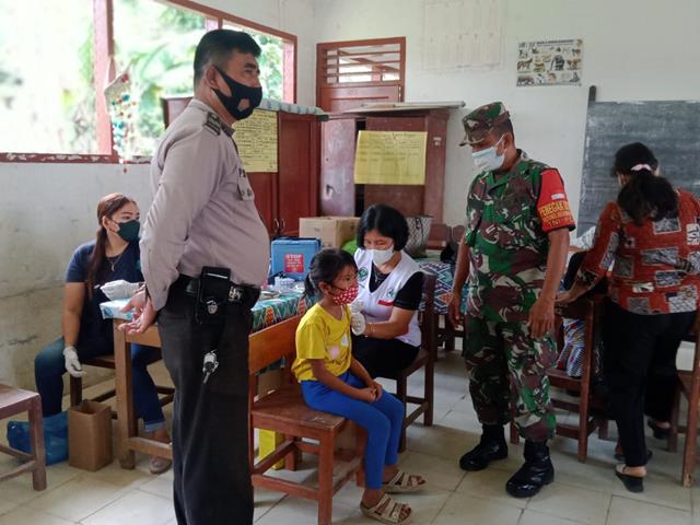 Simalungun | Demi mensukseskan program pemerintah dalam vaksinasi nasional untuk mencegah menyebarnya virus Covid -19 babinsa aktif mendampingi disetiap kegiatan vaksinasi baik kepada masyarakat, kegiatan tersebut bertujuan agar masyarakat merasa aman dan nyaman saat melakukan aktifitasnya, dalam hal ini seperti yang dilakukan oleh Personel Bintara Pembina Desa (Babinsa) Koramil 09/Tiga Balata jajaran Kodim 0207/Simalungun Serka James Pakpahan dan Serda Eddy Siagian turun kewilayah binaan untuk melaksanakan kegiatan monitoring serta mendampingi pelaksanaan Vaksinasi Dosis II Covid-19, kegiatan tersebut yang dilaksanakan bertempat di SD Negeri 091450 Bah Tonguran Kecamatan Jorlang Hataran Kabupaten Simalungun, Senin (14/02/2022).