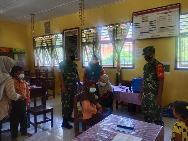 Asahan  |  Dalam rangka mendukung Serbuan Vaksinasi dan memutus penularan Covid-19 di Koramil 13/Buntu Pane, Babinsa Sertu Sugito dan Serda Hendro Sucipto turut melaksanakan pendampingan Vaksinasi, kegiatan tersebut yang dilaksanakan bertempat di SD Negeri 010111 Desa Tinggi Raja, Kecamatan Tinggi Raja, Kabupaten Asahan, Jumat (18/02/2022).