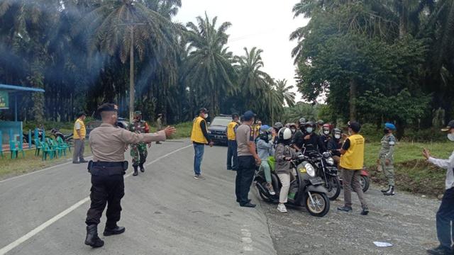 Penyekatan arus lalu lintas bersama satgas covid-19 yang dikakukan dari pagi hari dapat mengurangi laju mobilitas warga yang akan keluar Bahorok
