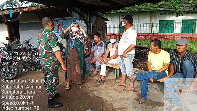 Asahan | Dengan adanya penyemprotan disinfektan dan upaya-upaya yang sudah kami lakukan sejauh ini, diharapkan dapat mencegah masuknya virus Corona di wilayah Kabupaten Asahan, maka dari itu pada kesempatan tersebut Personel Bintara Pembina Desa (Babinsa) Koramil 16/Pulau Rakayat jajaran Kodim 0208/Asahan Serda I Marbun dan 1 orang anggota turun kewilayah desa binaan untuk melaksanakan kegiatan penyemprotan dan pemberian masker kepada masyarakat diwilayah binaan dengan memberikan himbauan kepada masyarakat agar tetap mematuhi protokol kesehatan dengan cara memakai masker dan mencuci tangan dalam rangka untuk mencegah penyebaran Virus Covid-19 bersama dengan Bapak Niken (Warga), Bapak Ali (Warga), Ibu Ida (Pemilik Kedai) dan Bapak Ucok Saragi, kegiatan tersebut yang dilaksanakan bertempat di Dusun 1 Desa Orika Kecamatan Pulau Rakyat Kabupaten Asahan, Senin (04/04/2022).