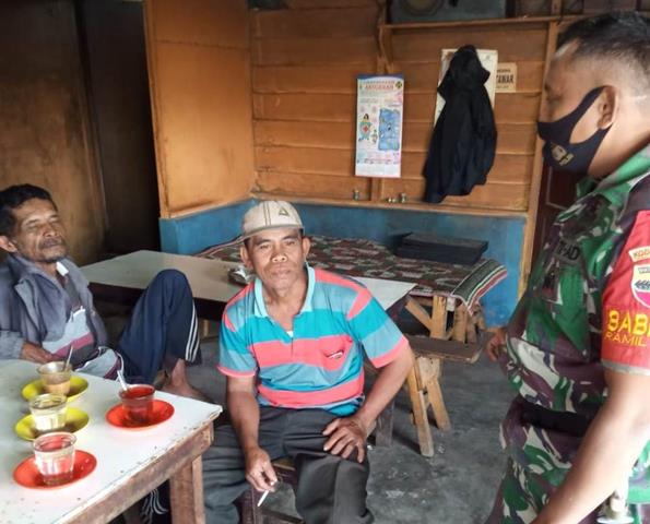 Simalungun | Supaya terjalin silaturahmi yang baik antara babinsa dengan masyarakat dan upaya terus dilakukan dalam membantu pemerintah guna pencegahan penyebaran Covid-19, seperti halnya yang dilakukan oleh Personel Bintara Pembina Desa Koramil 08/Bangun jajaran Kodim 0207/Simalungun Serka Zulkifli turun kewilayah binaan untuk turut serta melakukan kegiatan Komunikasi Sosial (Komsos) bersama dengan warga binaan, dengan melaksanakan komunikasi sosial dengan Bapak Wilman, adapun topik pembicaraan tentang pentingnya memakai masker kepada masyarakat, saat beraktifitas jaga jarak dan selalu mencuci tangan pakai sabun dengan air yg mengalir sebagai upaya pencegahan dan penyebaran Covid-19, kegiatan Komsosnya tersebut yang dilaksanakan bertempat di Nagori Pantoan Maju Kecamatan Siantar Kabupaten Simalungun, Jumat (07/01/2022).