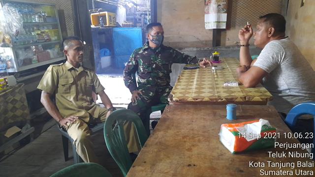 Tanjung Balai  |  Dalam rangka menegakkan disiplin Protokol Kesehatan (Prokes), Bintara Pembina Desa (Babinsa) Koramil 08/Pulau Buaya jajaran Kodim 0208/Asahan Serka Prayogi turun kewilayah binaan untuk melaksanakan kegiatan Komunikasi Sosial (Komsos) dan Penegakan Disiplin Protokol Kesehatan dengan menghimbau warga agar setiap beraktifitas keluar rumah supaya senantiasa menggunakan masker, menjaga jarak dan sesering mungkin mencuci tangan guna mencegah penyebaran penularan virus Covid-19 bersama dengan Bapak Muhibbat dan Bapak Andi, kegiatan tersebut yang dilaksanakan bertempat di Jalan Letjen Suprapto Desa Perjuangan Kecamatan Teluk Nibung Kota Tanjung Balai, Selasa (14/09/2021).