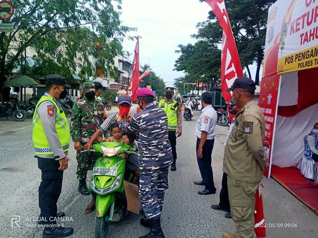 Tanjung Balai | Dalam rangka agar terciptanya sinergi kerjasama antara TNI -POLRI dan Instansi terkait dalam pengamanan lalu lintas serta penerapan protokol kesehatan bagi masyarakat yang melaksanakan liburan, pengamanan arus balik lebaran dengan bergabung dalam pos pengamanan terpadu bersama Polsek, dalam hal ini seperti yang dilakukan oleh Personel Bintara Pembina Desa (Babinsa) Koramil 09/Tanjung Balai jajaran Kodim 0208/Asahan Serka Evi. S dan Serda As. Tarigan turun kewilayah binaan untuk melaksanakan kegiatan Pos Pam ll Idul Fitri 1443 H dalam rangka menghadapi arus balik Hari Raya Idul Fitri 1443 H Ops Ketupat Thn 2022, kegiatan tersebut yang dilaksanakan bertempat di (Jembatan Tabayang) Jalan Jenderal Sudirman Kelurahan Karya Kota Tanjung Balai, Senin (09/05/2022).