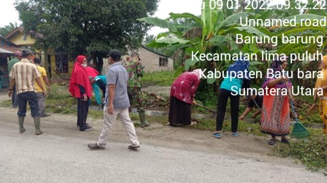 Batu Bara | Dalam kegiatan sudah menjadi tugas dan tanggungjawab bagi Babinsa untuk bisa memelihara hubungan yang baik bersama warganya. Salah satunya melalui karya bakti dan bergotong royong bersama masyarakat binaan, agar tercipta keakraban antara TNI dan Rakyat, seperti halnya yang dilakukan oleh Personel Bintara Pembina Desa (Babinsa) Koramil 03/Lima Puluh jajaran Kodim 0208/Asahan Serka Ely beserta masyarakat Desa Barong barong turut serta melaksanakan kegiatan Gotong Royong pembersihan parit dan badan jalan desa supaya tidak terjadi banjir bila hujan datang bersama dengan Kades Barong barong Bapak Ilyas Efendi, Seluruh Kadus Barong Barong dan Masyarakat Desa Barong barong, kegiatan tersebut yang dilaksanakan bertempat di Desa Barong barong Kecamatan Lima Puluh Pesisir Kabupaten Batu Bara, Minggu (09/01/2022).