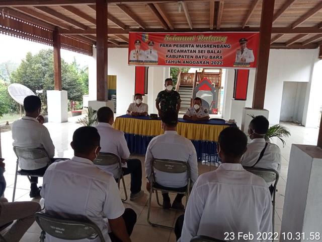 Rapat Koordinasi Percepatan Percepatan Vaksinasi Masyarakat Umum, Lansia dan Anak Sekolah Usia 6-11 Tahun yang diselenggarakan di Kantor Camat Sei Balai, “Percepatan vaksinasi anak sekolah usia 6-11 tahun merupakan program dari Pemerintah sehingga kita harus mendukung kegiatan tersebut sehingga pelaksanaannya dapat berjalan dengan lancar aman dan sukses, kata Danramil.