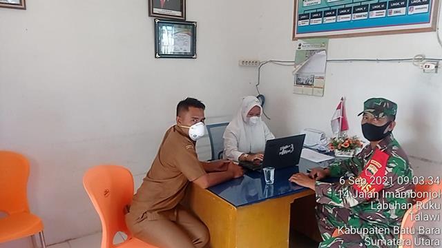 Batu Bara | Dalam rangka untuk menciptakan dan meningkatkan kerja sama yang baik, dan menjaga silatuhrahmi antara TNI, dan masyarakat, untuk menciptakan kemanunggalan TNI dan Rakyat, dalam mempererat Silaturahmi dan kerja sama yang baik bersama perangkat kelurahan di wilayah binaan, maka Personil Koramil 04/Talawi jajaran Kodim 0208/Asahan Serda Dani maramis dan Kopda Sambari turun kewilayah untuk melaksanakan kegiatan Komunikasi Sosial (Komsos) sekaligus membahas Kamtibmas dengan warga binaan bersama dengan Bapak Bambang dan Bapak Gustini, kegiatan tersebut yang dilaksanakan bertempat di Kantor Kelurahan Labuhan Ruku Kecamatan Talawi Kabupaten Batu Bara, Senin (06/09/2021).