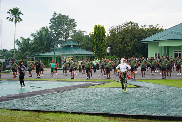 Kegiatan senam bersama bagi setiap Prajurit Korem 022/PT dan Disjan serta Persit ini adalah merupakan kegiatan yang diprogramkan dari Komando atas untuk memelihara serta meningkatkan kemampuan fisik dan menjaga kesehatan. Dalam tuntutan tugas yang diprogramkan oleh TNI-AD salah satu yang mendapat perhatian adalah kemampuan fisik, terang Danrem.