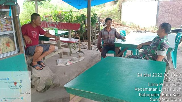 Batu Bara  |  Dalam rangka agar terjalinnya tali silaturahmi dan komunikasi yang baik antara Babinsa, dengan masyarakat Desa binaan di tengah kondisi pandemi Covid 19 yang sedang mewabah, dalam hal ini seperti yang dilakukan oleh Personel Bintara Pembina Desa (Babinsa) Koramil 03/Lima Puluh jajaran Kodim 0208/Asahan Serka Agus Fajar turun kewilayah desa binaan untuk melaksanakan Komunikasi Sosial (Komsos) dengan masyarakat kelurahan lima puluh agar berperan aktif ikut menjaga keamanan dan kepedulian dengan wilayah lingkungan lima puluh kota, serta selalu memperhatikan adanya pendatang baru dan segera laporkan kepada aparat keamanan atau kepada kepala lingkungan, kegiatan tersebut yang dilaksanakan bertempat di Desa Lima Puluh Kota Kecamatan Lima Puluh Kabupaten Batu Bara, Selasa (24/05/2022).