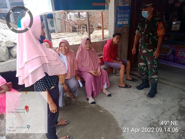 Asahan  |  Dengan menghimbau warga Desa agar melaksanakan Vaksin 1, 2 dan Booster  serta tetap melaksanakan protokol kesehatan selama bulan ramadhan serta agar terjalinnya komunikasi serta mempererat tali silaturahmi antara Babinsa Koramil 10/SK dengan masyarakat Desa Binaan dalam rangka untuk menjalin silaturahmi dengan warga binaan, dalam hal ini Personel bintara Pembina Desa (Babinsa) Koramil 10/Sei Kepayang jajaran Kodim 0208/Asahan Serka J.H Lubis turun kewilayah binaan untuk melaksanakan kegiatan komunikasi Sosial (Komsos) bersama dengan warga Desa Sei Kepayang Tenga selaku mitra karib serta warga masyarakat desa binaan dalam rangka menghimbau agar warga selalu mendisiplinkan diri dalam menjaga kesehatan sehari hari sertamembicarakan tentang perkembangan situasi desa yang mana menjelang Hari Raya Idul Fitri masih sering terjadi kehilanagan atau Pencurian ternak, maka di himbau kepada masyarakat harus ditingkatkan lagi penjagaan malam guna menghindari terjadiya hal yang serupa, kegiatan tersebut yang dilaksanakan bertempat di Jalan Tanjung Balai Kelurahan Tanjung Ledong Desa Sei Kepayang Tengah Kecamatan Sei Kepayang Kabupaten Asahan, Kamis (21/04/2022).
