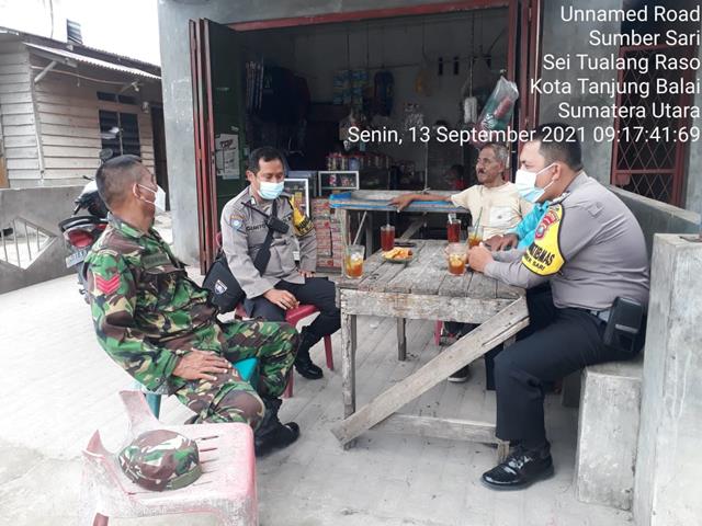 Tanjung Balai | Dalam rangka menjalin kerjasama dalam membina keharmonisan, personil Koramil 17/Datuk Bandar jajaran Kodim 0208/Asahan Kopka Nurwanto turut serta melaksanakan kegiatan Komunikasi Sosial (Komsos) bersama dengan warga masyarakat di warung Bapak Khalel M dalam rangka tentang keamanan lingkungan, agar setiap warga bertanggung jawab dan peduli dengan keamanan di wilayah tempat tinggal masing, supaya tercipta suana rasa aman dan tertip, kegitanat tersebut yang dilaksanakan bertempat di Lingkungan VII Kelurahan Sumber Sari Kecamatan Sei Tualang Raso Kota Tanjung Balai, Senin (13/09/2021).