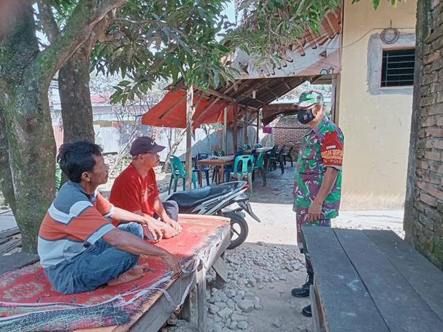 Komunikasi Sosial (Komsos) dengan masyarakat ini rutin dan berkesinambungan dilakukan untuk mempererat tali silaturahmi dan kerjasama yang baik dalam rangka mendukung tugas pokok Babinsa serta terwujudnya kemanunggalan TNI dengan rakyat. Hal ini juga, sebut Sertu Teno dalam rangka memperoleh berbagai informasi yang sedang berkembang ditengah-tengah masyarakat khususnya di Desa binannya tersebut. “Dengan rutin melaksanakan komsos sembari berinteraksi dengan warga binaan, maka kita dapat dengan cepat memperoleh segala informasi yang sedang berkembang ditengah-tengah masyarakat, dengan melaksanakan kegiatan gakplin protokol kesehatan menghimbau warga Masyarakat jika keluar rumah agar selalu mematuhi protokol kesehatan dengan Cara memakai masker, menjaga jarak dan mencuci tangan ,menjauhi kerumunan, guna mencegah penyebaran penularan virus Covid – 19” sebutnya.