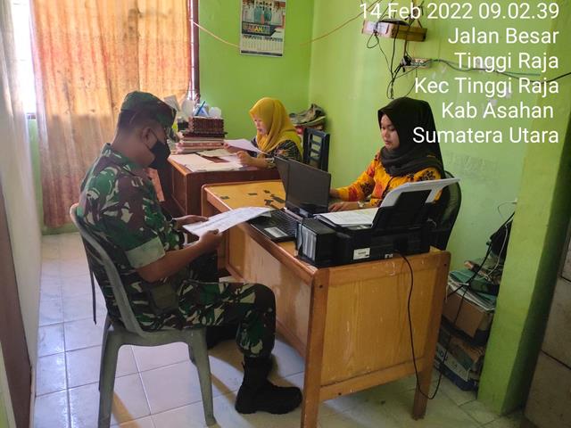 Asahan | Dalam rangka agar terjalinnya hubungan yang harmonis antara Babinsa, Perangkat Desa dan Masyarakat Desa guna membangun Sinergitas dan kebersamaan, maka dari itu seperti yang dilakukan Personel Bintara Pembina Desa (Babinsa) Koramil 13/Buntu Pane jajaran Kodim 0208/Asahan Serda Hendro Sucipto turun kewilayah binaan untuk melaksanakan kegiatan Komunikasi Sosial (Komsos) bersama dengan perangkat Desa dalam rangka membicarakan tentang perkembangan penduduk yg mangkin bertambah agar selalu mengikuti petunjuk dan arahan bidan desa yang sudah di berikan serta membicarakan Gotong Royong pembuatan saluran pembuangan air agar di saat hujan datang tidak menggenang air, bersama dengan Kaur Pelayanan Ibu Fitri dan Kaur Sosial Ibu Herna, kegiatan tersebut yang dilaksanakan bertempat di Desa Tinggi Raja Kecamatan Tinggi Raja Kabupaten Asahan, Senin (14/02/2022).