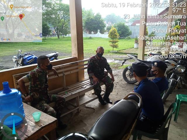 Asahan | Dalam rangka guna menjalin silaturahmi dengan Petugas Damkar, dalam hal ini seperti yang dilakukan oleh Personel Bintara Pembina Desa (Bainsa) Koramil 16/Pulau Rakyat jajaran Kodim 0208/Asahan Serka Sudarmonk dan Serda Monang Sitorus turun kewilayah binaan untuk melaksanakan kegiatan Komunikasi Sosial (Komsos) bersama dengan Petugas Damkar perwakilan Damkar Kabupaten Asahan yang bertugas di Wilayah Asahan Atas guna mempererat hubungan yang harmonis serta menjalin tali Silaturahim diwilayah binaan bersama dengan Bapak D. Sitorus dan Bapak Ananda, kegiatan tersebut yang dilaksanakan bertempat di Desa Pulau Rakyat Tua Kecamatan Pulau Rakyat Kabupaten Asahan, Sabtu (19/02/2022).