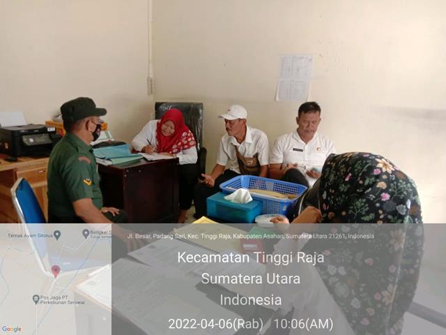 Dalam hal ini seperti yang dilakukan oleh Personel BIntara Pembina Desa (Babinsa) Koramil-13/Buntu Pane jajaran Kodim 0208/Asahan Serda M. Sagala turun kewilayah binaan untuk melaksanakan kegiatan Komunikasi Sosial (Komsos) bersama dengan aparat Pemerintah Kecamatan yang ada diwilayah binaan dalam rangka menkordinasikan kegiatan kecamatan selama bulan puasa Ramadan sesuai program pemerintah agar kegiatan tersebut berdampak langsung kepada masyarakat bersama dengan Sekcam Tinggi Raja Bapak Kartono. SH dan Kaskesrs Tinggi Raja Ibu Jahara, kegiatan tersebut yang dilaksanakan bertempat di Kantor Camat Tinggi Raja Dusun 3 Desa Padang Sari Kecamatan Tinggi Raja Kabupaten Asahan, Rabu (06/04/2022).