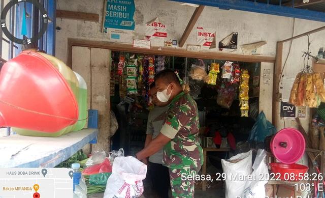 Asahan | Jelang Bulan Suci Ramadhan para Babinsa cek harga sembako di Pasar-pasar Tradisional yang ada diwilayah binaan masing-masing, dalam hal ini seperti yang dilakukan oleh Personel Bintara Pembina Desa (Babinsa) Koramil 15/Bandar Pulau jajaran Kodim 0208/Asahan Kopda Juliono turun kewilayah desa binaan untuk melaksanakan kegiatan pengecekan dan memantau harga Barang sembako yang sebentar lagi akan memasuki bulan suci Ramadhan bersama dengan Bapak Rino (pemilik Warung), kegiatan tersebut yang dilaksanakan bertempat di Dusun 2 Desa Batu Anam Kecamatan Rahuning Kabupaten Asahan, Selasa (29/03/2022).