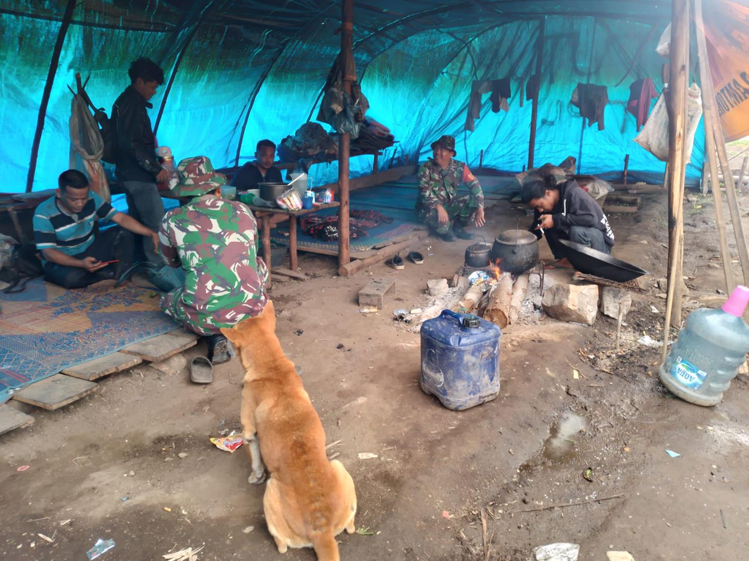 Keakraban tersebut dilihat saat warga dan Satgas sedang istirahat bersama dan bersendau gurau pada saat menunggu berhentinya hujan di tenda seputaran Base Camp Lamtoras. Rabu (16/11/2022).