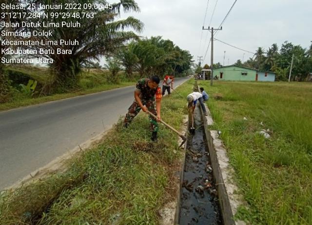 Batu Bara | Babinsa merupakan garda terdepan satuan Komando Kewilayahan yang berhubungan langsung dengan masyarakat, dan ini salah satunya wujud nyata kegiatan yang dilakukankan Babinsa dalam membantu masyarakat, dalam hal ini seperti halnya yang dilakukan oleh Personel Bintara Pembina Desa (Babinsa) Koramil 03/Lima Puluh jajaran Kodim 0208/Asahan Serka Hijar Windro turun kewilayah binaan untuk melaksanakan kegiatan Gotong Royong bersama masyarakat Desa Simpang Dolok, membersihkan Parit dan rumput di pinggir jalan bersama dengan Kadus 6 Bapak Sugeng dan Masyarakat Desa Sp. Dolok, kegiatan tersebut yang dilaksanakan bertempat di Dusun 6 Desa Simpang Dolok Kecamatan Datuk Lima Puluh Kabupaten Batu Bara, Selasa (25/01/2022).