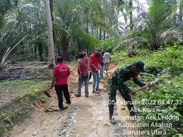 Asahan | Selain membersihkan jalan, gotong royong itu juga menimbun jalan yang sudah berlobang yang diakibatkan curah hujan, sehingga terjadi pengikisan tanah yang membuat akses jalan jadi berlobang dan digenangi air, dalam hal ini seperti yang dilakukan oleh Personel Bintara Pembina Desa (Babinsa) Koramil 16/Pulau Rakyat jajaran Kodim 0208/Asahan Sertu Surono turun kewilayah desa binaan untuk melaksanakan kegiatan Gotong Royong membersihkan Jalan Alternatif/Potongan dari Dusun 2 ke Dusun 10 sepanjang 300 meter, kegiatan tersebut yang dilaksanakan bertempat di Dusun 2 Desa Aek Korsik Kecamatan Aek Ledong Kabupaten Asahan, Sabtu (05/02/2022).