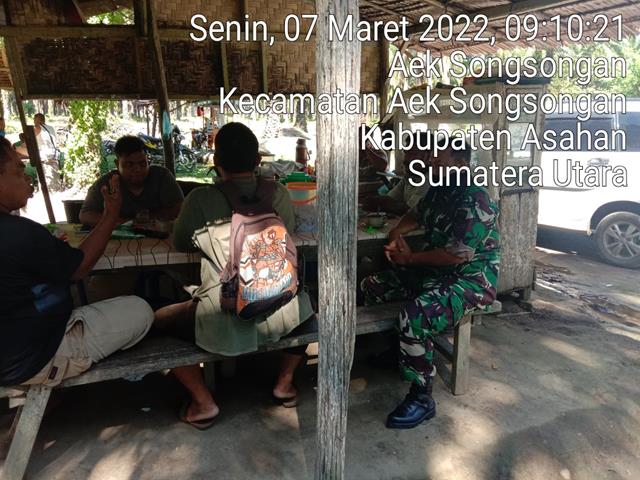 Asahan  |  Guna menciptakan situasi Keamanan dan Ketertiban Masyarakat (Kamtibmas) ditengah-tengah masyarakat di desa binaan, selain bertugas sebagai Aparat Keamanan, Babinsa juga harus bisa menggalang masyarakat di desa binaannya. Sehingga keberadaan Babinsa sangat dibutuhkan oleh warganya, dalam hal ini seperti yang dilakukan oleh Personel Bintara Pembina Desa (Babinsa) Koramil 15/Bandar Pulau jajaran Kodim 0208/Asahan Serda Hamzah turun kewilayah binaan untuk melaksanakan kegiatan Komunikasi Sosial (Komsos) bersama dengan warga desa binaan dalam rangka membahas mulai maraknya pencurian buah sawit mengakibatkan masyarakat resah sebagai Babinsa menyarankan agar ronda malam diaktifkan lagi yang akan dibantu oleh Babinkabtimas dan Babinsa selaku pembina Desa bersama dengan Bapak Jumain, Bapak Syariadi dan Bapak Sujoko, kegiatan tersebut yang dilaksanakan bertempat di Dusun I Desa Aek Songsongan Kecamatan Aek Songsongan Kabupaten Asahan, Senin (07/03/2022).