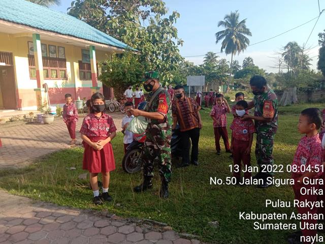 Asahan | Dalam rangka untuk mepercepat proses Vaksinasi diwilayah desa binaan, maka dari itu Personel Bintara Pembina Desa (Babinsa) Koramil 16/Pulau Rakayat jajaran Kodim 0208/Asahan Serda Iswandi Marbun dan Serda Nampati Tarigan turun kewilayah desa binaan untuk melaksanakan kegiatan Memonitoring kegiatan sosialisasi serta Vaksin Usia 6 -11 tahun bersama dengan Bapak Korwil UPT Pendidikan An. Bapak Darwin, Ibu Guru An. Ibu R. Br Ginting, Ibu Guru An. Ibu Rosmawati Lubis dan Para Siswa/Siswi SD, untuk Vaksin kegiatan tersebut yang dilaksanakan bertempat di Sekolah SD Negeri 010115 Desa Orika Kecamatan Pulau Rakyat Kabupaten Asahan, Kamis (13/01/2022).