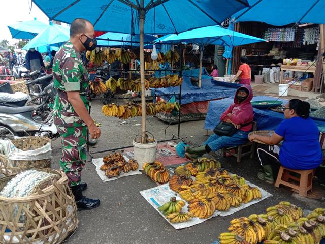 Jajaran Kodim 0207/Simalungun dalam hal ini Koramil 01/Siantar Utara semakin gencar melaksanakan PPKM di wilayahnya dalam rangka menekan tingkat penyebaran virus Covid-19, salah satunya yang dilakukan oleh Babinsa Serda Saji melaksanakan PPKM skala Mikro di Pasar Tradisional di Pasar Dwikora Parluasan Jalan Pantuan Nagari. Untuk itu, dalam setiap pelaksanaan PPKM skala Mikro juga melakukan pengecekan Suhu tubuh kepada pedagang dan pengunjung pasar, para Babinsa secara langsung menyampaikan kepada pedagang dan pengunjung pasar, pentingnya disiplin protokol kesehatan, ucapnya.