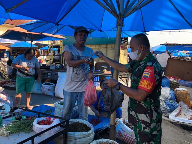 Para Pedagang dan Pembeli merasa senang dengan adanya himbauan dari Babinsa Koramil 01/Siantar Utara. Pengecekan dan himbauan di tempat keramaian dan fasilitas umum untuk pencegahan wabah virus Covid 19, di Pasar Dwikora Pajak Perluasan Jalan Patuan Nagari Kelurahan Suka Dame Kecamatan Siantar Utara. Babinsa melaksanakan himbauan kepada masyarakat, terlebih khususnya kepada para pedagang dan pembeli di pasar tradisional, dalam rangka melaksanakan penerapan disiplin dalam mematuhi protokol kesehatan. Himbauan yang disampaikan Babinsa Serda Saji ini, masih adanya para pembeli dan pedagang yang tidak menggunakan masker, dan mereka menganggap biasa kalau tidak mengunakan masker. “Babinsa selalu mengingatkan bahwa kita harus terus tetap tingkatkan kewaspadan yang terlebih khususnya masyarakat di wilayah Koramil 01/Siantar Utara dengan cara yang dilaksanakan dengan humanis dan tetap tegas agar warga mau mendisiplinkan dirinya sendiri dan keluarganya,” ucap Babinsa Serda Saji.