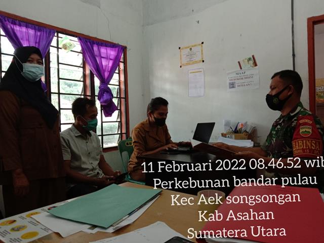 Asahan | Dalam rangka meningkatkan sinergitas di wilayah binaanya, dalam hal ini seperti yang dilakukan oleh Personel Bintara Pembina Desa (Babinsa) Koramil 15/Bandar Pulau jajaran Kodim 0208/Asahan Sertu Irwan Bustomi turun kewilayah binaan untuk melaksanakan kegiatan PUL DATA TER bersama aparat Desa wilayah binaan dalam rangka guna untuk lebih melengkapi lagi data Ter yang sudah ada bersama dengan Kades Perkebunan Bandar Pulau dan Sekdes dan Para Kaur Desa Perk Bandar Pulau, kegiatan tersebut yang dilaksanakan bertempat di Kantor Desa Perkebunan Bandar Pulau Kecamatan Aek Songsongan Kabupaten Asahan, Jumat (11/02/2022).