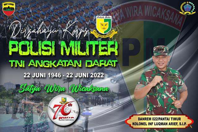 Keluarga Besar Korem 022/Pantai Timur Mengucapkan Digahayu Korps Polisi Militer TNI Angkatan Darat Ke-76 ” Satya Wira Wicaksana “admin22 Juni 2022Militer655 views Berita LainnyaDanrem 022/PT Buka Secara Resmi Kegiatan Pembekalan Ilmu Fotografi Di Lingkungan Korem 022/PTKorem 022/PT Gelar Bakti Sosial Dalam Rangka Menyambut HUT TNI Ke-79 Tahun 2024Sekolah SD-SMP Swasta Kartika I-4 Pematangsiantar Terima Bantuan Chromebook Dari Pemko PematangsiantarKorem 022/PT Gelar Upacara Bendera Awal Bulan September 2024