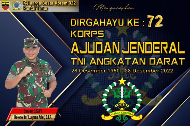 Keluarga Besar Korem 022/Pantai Timur Mengucapkan Dirgahayu Ke-72 Korps Ajudan Jenderal TNI Angkatan Daratadmin28 Desember 2022Militer461 views Keluarga Besar Korem 022/Pantai Timur Mengucapkan Dirgahayu Ke-72 Korps Ajudan Jenderal TNI Angkatan Darat Berita LainnyaDanrem 022/PT Buka Secara Resmi Kegiatan Pembekalan Ilmu Fotografi Di Lingkungan Korem 022/PTKorem 022/PT Gelar Bakti Sosial Dalam Rangka Menyambut HUT TNI Ke-79 Tahun 2024Sekolah SD-SMP Swasta Kartika I-4 Pematangsiantar Terima Bantuan Chromebook Dari Pemko PematangsiantarKorem 022/PT Gelar Upacara Bendera Awal Bulan September 2024
