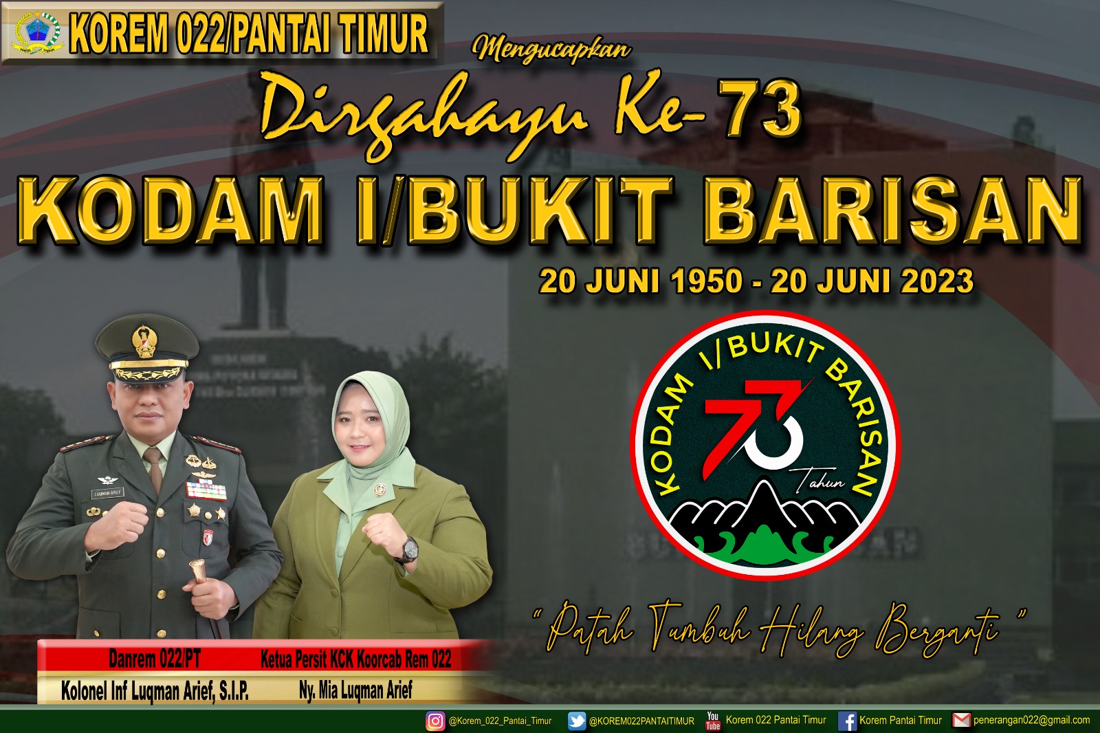 Keluarga Besar Korem 022/Pantai Timur Mengucapkan Dirgahayu Ke-73 KODAM I/BUKIT BARISAN ” Patah Tumbuh Hilang Berganti “