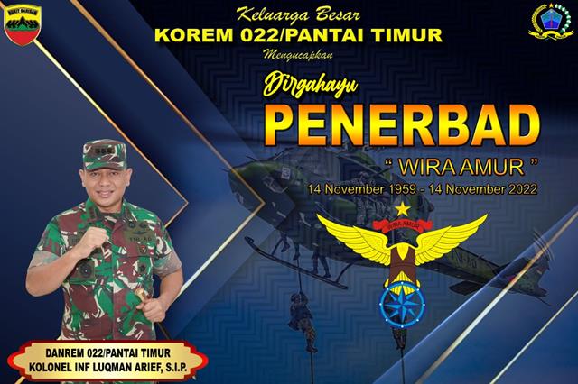 Keluarga Besar Korem 022/Pantai Timur Mengucapkan Dirgahayu PENERBAD “ Wira Amur “ 14 November 1959 – 14 November 2022