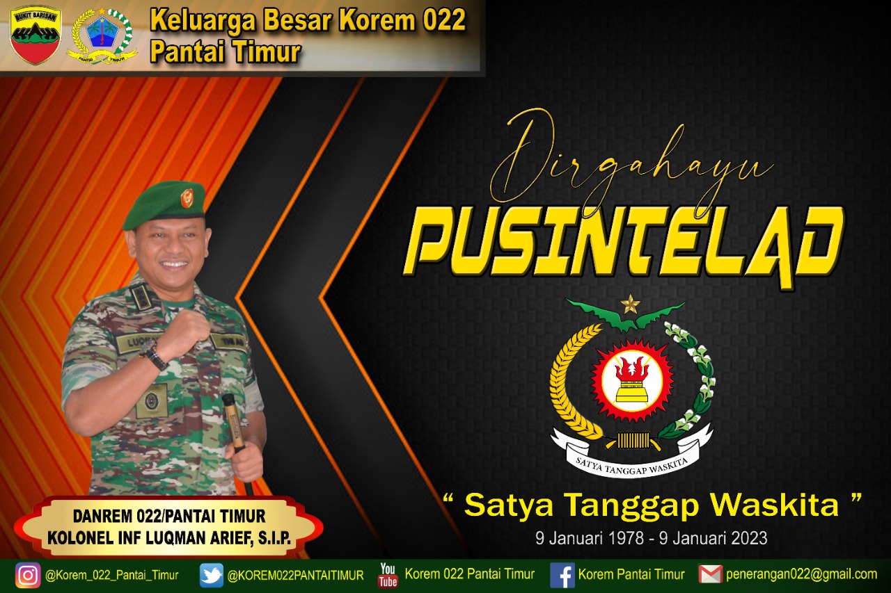 Keluarga Besar Korem 022/Pantai Timur Mengucapkan Dirgahayu Pusinteladadmin8 Januari 202310 Januari 2023Militer669 views Keluarga Besar Korem 022/Pantai Timur Mengucapkan Dirgahayu Pusintelad 09 Januari 1978 – 09 Januari 2023 Berita LainnyaDanrem 022/PT Buka Secara Resmi Kegiatan Pembekalan Ilmu Fotografi Di Lingkungan Korem 022/PTKorem 022/PT Gelar Bakti Sosial Dalam Rangka Menyambut HUT TNI Ke-79 Tahun 2024Sekolah SD-SMP Swasta Kartika I-4 Pematangsiantar Terima Bantuan Chromebook Dari Pemko PematangsiantarKorem 022/PT Gelar Upacara Bendera Awal Bulan September 2024