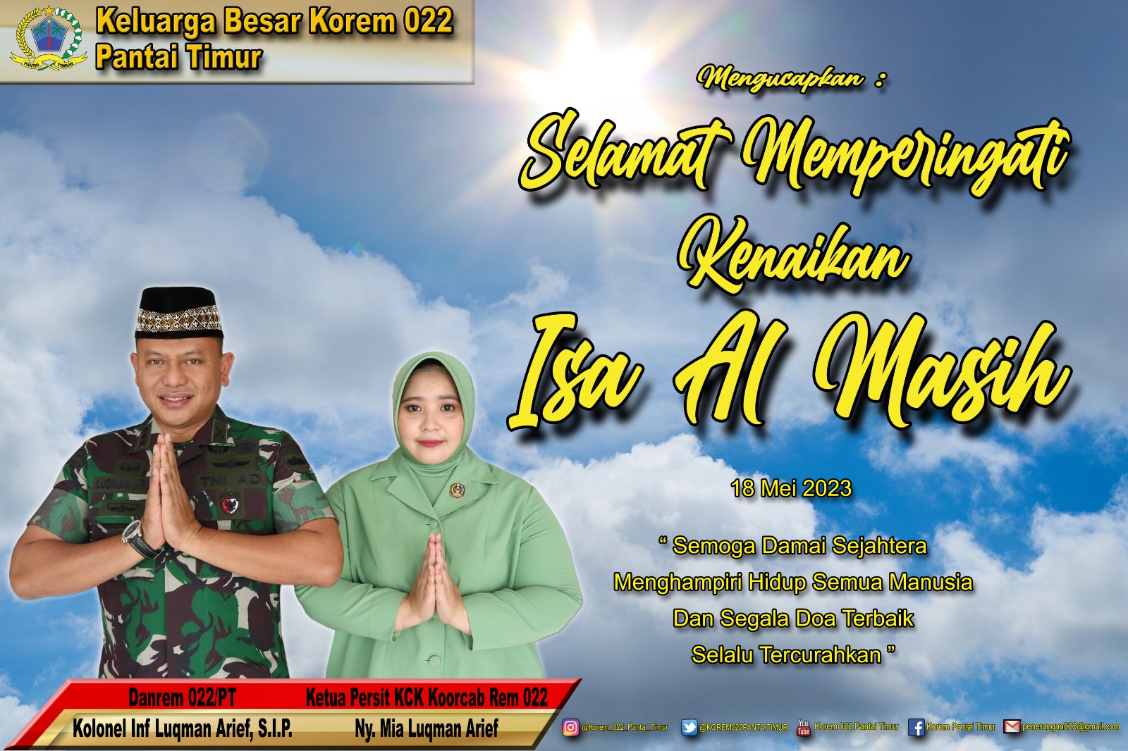 Keluarga Besar Korem 022/Pantai Timur Mengucapkan Selamat Memperingati Kenaikan Isa Almasih