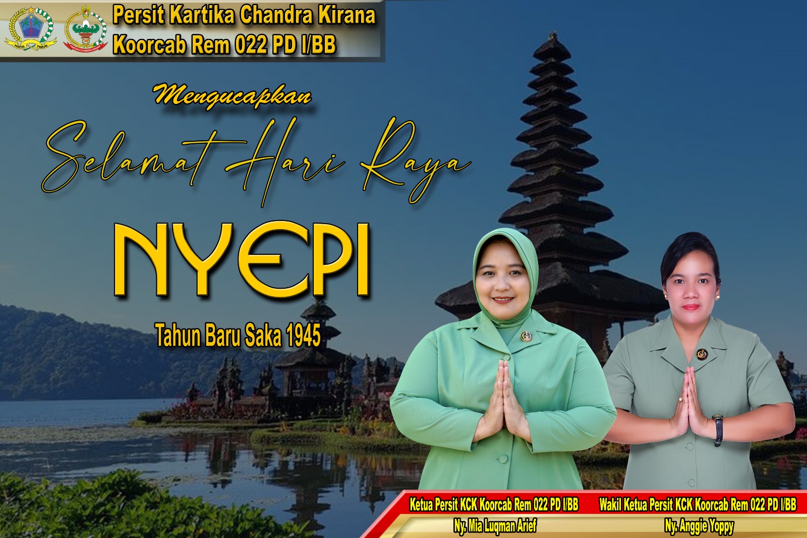 Ketua Persit Kartika Chandra Kirana Koorcab Rem 022 PD I/BB Beserta Segenap Pengurus Mengucapkan Selamat Hari Raya Nyepi dan Tahun Baru Saka 1945 Pematang Siantar 22 Maret 2023