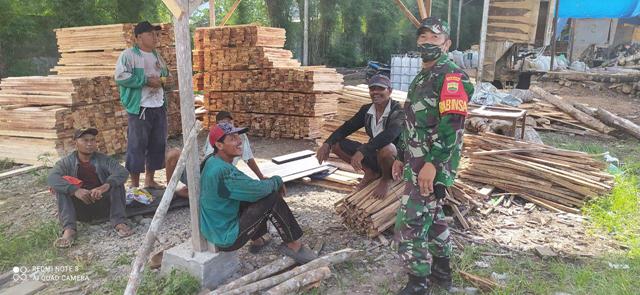 Komsos, Babinsa 09/Hinai  Sambangi Pekerja Kayu