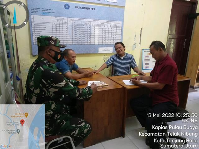 Asahan | Komunikasi Sosial (Komsos) merupakan salah satu metode binter (pembinaan teritorial) yang digunakan untuk menyampaikan berbagai hal yang berkaitan dengan tugas, peran, fungsi, visi dan misi serta kebijakan Komando kewilayahan, dalam hal ini seperti yang dilakukan oleh Personel Bintara Pembina Desa (Babinsa) Koramil 08/Pulau Buaya jajaran Kodim 0208/Asahan Serda Edyanto turun kewilayah binaan untuk melaksanakan kegiatan Komunikasi Sosial (Komsos) bersama dengan Kasi PMD membahas tentang kegiatan desa bersama dengan Bapak Edy Suharto (Kasi PMD), Bapak Suhartono (Tenaga Ahli Kemendes) dan Bapak N. Nababan (Pendamping Desa), kegiatan tersebut yang dilaksanakan bertempat di Kantor Kecamatan Tanjung Balai Kabupaten Asahan, Jumat (13/05/2022).