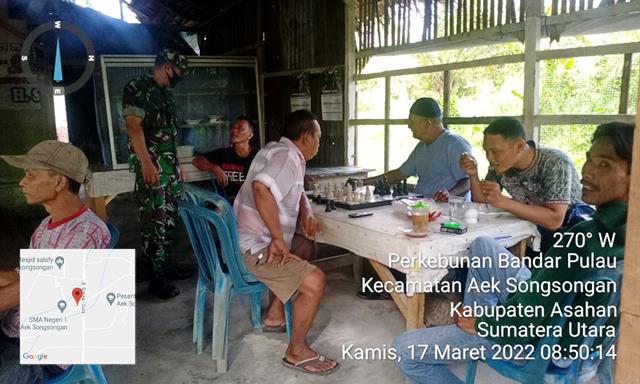 Asahan | Agar terciptanya Kemanunggalan TNI dan Rakyat serta terjalinya hubungan baik antara Babinsa dengan Aparat Nagori menunjang Tupoksi Apter, dalam hal ini Personel Bintara Pembina Desa (Babinsa) Koramil 15/Bandar Pulau jajaran Kodim 0208/Asahan Serma Sukarman turun kewilayah binaan untuk melaksanakan kegiatan Komunikasi Sosial (Komsos) bersama dengan warga masyarakat binaan, adapun topik pembicaraan tentang perlunya Vaksinasi kepada masyarakat supaya terhindar dari Covid-19 yang sedang mewabah diseluruh wilayah kita sertamenghimbau dan mengajak warga binaan yang belum melaksanakan Vaksin agar segera melaksanakan Vaksin supaya terhindar dari dampak Virus Covid 19 dan mengingat kan warga agar tetap memakai masker apabila keluar Rumah bersama dengan Bapak Salim, Bapak Rudi, Bapak Sitorus dan Bapak Ginting, kegiatan tersebut yang dilaksanakan bertempat di Dusun II Desa Aek Songsongan Kecamatan Aek Songsongan Kabupaten Asahan, Kamis (17/03/2022).