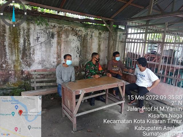 Asahan | Demi menjaga hubungan yang harmonis, seorang Babinsa harus mendatangi dan berkomunikasi bersama warga atau elemen masyarakat lainnya, seperti halnya yang dilakukan oleh Personel Bintara Pembina Desa (Babinsa) Koramil 06/Kisaran jajaran Kodim 0208/Asahan Serka Yusuf Harahap untuk melaksanakan kegiatan Komunikasi Sosial (Komsos) bersama dengan para pemuda yang berada diseputaran Koramil 06/Kisaran bersama dengan Bapak Budi, Bapak Benni dan Bapak Hamzah Warga binaan, kegiatan tersebut yang dilaksanakan bertempat di Jalan H.M Yamin Kelurahan Kisaran Naga Kecamatan Kota Kisaran Timur Kabupaten Asahan, Minggu (15/05/2022).