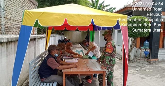 Batu Bara | Kegiatan ini merupakan kegiatan rutinitas aparat Komando Kewilayahan, guna meningkatkan hubungan harmonisasi antara aparat teritorial yakni sebagai Babinsa terhadap aparat desa binaannya, agar terjalin hubungan yang baik dengan cara komunikasi social, dalam hal ini seperti yang dilakukan oleh Personel Bintara Pembina Desa (Babinsa) Koramil 03/Lima Puluh jajaran Kodim 0208/Asahan Serda Sutikno turunkewilayah binaan untuk melaksanakan kegiatan Komunikasi Sosial (Komsos) bersama dengan Sekdes Bapak Hendra Adha dan Kaur desa dalam rangka untuk membahas tentang penyaluran bantuan sosial kepada masyarakat agar tepat sasaran dan dapat bermanfaat bagi masyarakat, kegiatan tersebut yang dilaksanakan bertempat di Desa Perupuk Kecamatan Lima Puluh Pesisir Kabupaten Batu Bara, Sabtu (05/03/2022).