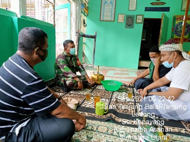 Asahan | Agar terjalinnya tali silaturahmi yang baik antara Babinsa Koramil 10/Sei Kepayang Tokoh Agama masyarakat Desa Sei Paham, dalam hal ini Personel Bintara Pembina Desa (Babinsa) Koramil 10/Sei Kepayang jajaran Kodim 0208/Asahan Serda Rusli Ucok turun kewilayah binaan untuk melaksanakan kegiatan Komunikasi Sosial (Komsos) bersama dengan Tokoh Agama masyarakat Desa Sei paham, kegiatan tersebut yang dilaksanakan bertempat di Desa Sei Paham Dusun lll Kecamatan Sei Kepayang Kabupaten Asahan, Sabtu (04/09/2021).