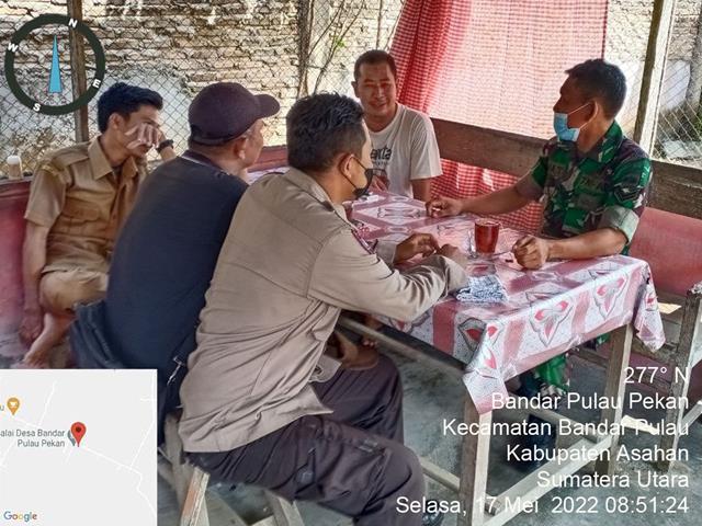 Asahan | Supaya terjalinnya tali silaturahmi antara Babinsa dengan warga masyarakat, dalam hal ini seperti yang dilakukan oleh Personel Bintara Pembina Desa (Babinsa) Koramil 15/Bandar Pulau jajaran Kodim 0208/Asahan Sertu Fiha T turun kewilayah desa binaan untuk melaksanakan kegiatan Komunikasi Sosial (Komsos) bersama dengan Masyarakat binaan bersama dengan Briptu Iman (Bhabinkamtibmas), Bapak Syahrial (Tokoh Masyaraka) dan Bapak Imran (Kadus 3), kegiatan tersebut yang dialskanakan bertempat di Desa Bandar Pulau Pekan Kecamatan Bandar Pulau Kabupaten Asahan, Selasa (17/05/2022).