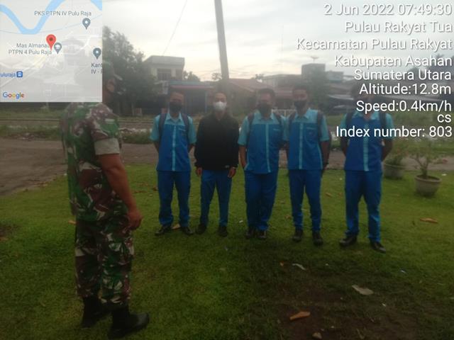 Asahan | Tidak akan lupa mengajak para siswa-siswi untuk selalu mematuhi Protokol Kesehatan dalam aktifitasnya sehari-hari baik didalam maupun di luar sekolah guna memutus penyebaran virus Covid-19 yaitu dengan selalu melakukan 3 M, yaitu menjaga jarak, memakai masker dan rajin mencuci tangan, dalam hal ini seperti yang dilakukan oleh Personel Bintara Pembina Desa (Babinsa) Koramil 16/Pulau Rakyat jajaran Kodim 0208/Asahan Serka DA. Handoko dan 1 orang anggota Babinsa turun kewilayah binaan untuk melaksanakan kegiatan Komunikasi Sosial (Komsos) bersama dengan siswa Sekolah Yaspenda, dengan memberikan pengarahan dan motifasi kpd siswa tersebut agar jangan bolos sekolah serta hindari pergaulan bebas seperti miras apalagi sampai memakai Narkoba yang dapat merusak kepribadian kita serta menhghancurkan generasi muda, yang mana cita2 kalian masih panjang serta menghimbau tetap mematuhi prokes Covid-19 dengan memakai masker dan sudah divaksin, kegiatan tersebut yang dilaksanakan bertempat di Desa Pulau Rakyat Pekan Kecamatan Pulau Rakyat Kabupaten Asahan, Kamis (02/06/2022).