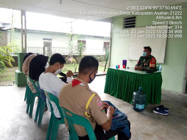 Asahan | Dalam rangka membina kekompakan bersama dengan anggota Sakawira Kartika, dalam hal ini seperti halnya yang dilakukan oleh Persone Bintara Pembina Desa (Babinsa) Koramil 06/Kisaran jajaran Kodim 0208/Asahan Praka Rio Sihotang turut serta melaksanakan kegiatan Komunikasi Sosial (Komsos) bersama dengan anggota Saka Wira Kartika Binaan Koramil 06/Kisaran, kegiatan tersebut yang dilaksanakan bertempat di Aula Koramil 06/Kisaran Jalan Prof Moh Yamin Lingkungan 3 Kelurahan Kisaran Naga Kecamatan Kisaran Timur Kabupaten Asahan, Minggu (23/01/2022).