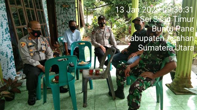 Asahan | Kegiatan komunikasi sosial merupakan kegiatan pembinaan teritorial yang rutin di laksanakan babinsa, seperti halnya yang dilakukan oleh Personel Bintara Pembina Desa (Babinsa) Koramil 13/Buntu Pane jajaran Kodim 0208/Asahan Serka Susastra turun kewilayah binaan untuk melaksanakan kegiatan Komunikasi Sosial (Komsos) bersama dengan Kopolsek Prapat Janji, Kades Sei Silau Timur dan Tokoh masyarakat menghimbau masyarakat untuk Vaksin baik vaksin Dosis 1 dan 2 bersama dengan Kapolsek Prapat Janji AKP JT Siregar, Kades Sei Silau Timur Bapak Jamal dan Tokoh Masyarakat Bapak Saimin, kegiatan tersebut yang dilaksanakan bertempat di Dusun 2B Desa Sei Silsu Timur Kecamatan Buntu Pane Kabupaten Asahan, Kamis (13/01/2022).